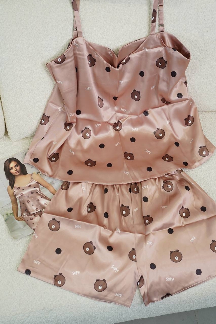ست تاپ شورتک ساتن طرح خرسی کد1030