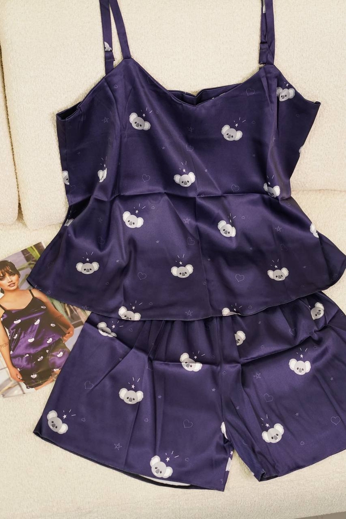 ست تاپ شورتک ساتن طرح کوالا کد1035