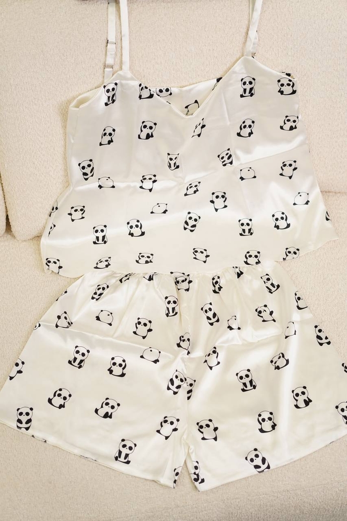 ست تاپ شورتک ساتن طرح پاندا کد1037