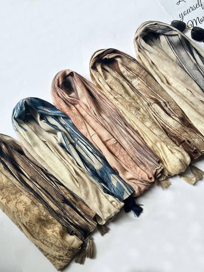 شال نخی طرح آبرنگی منگوله‌دار کد۱۰۶