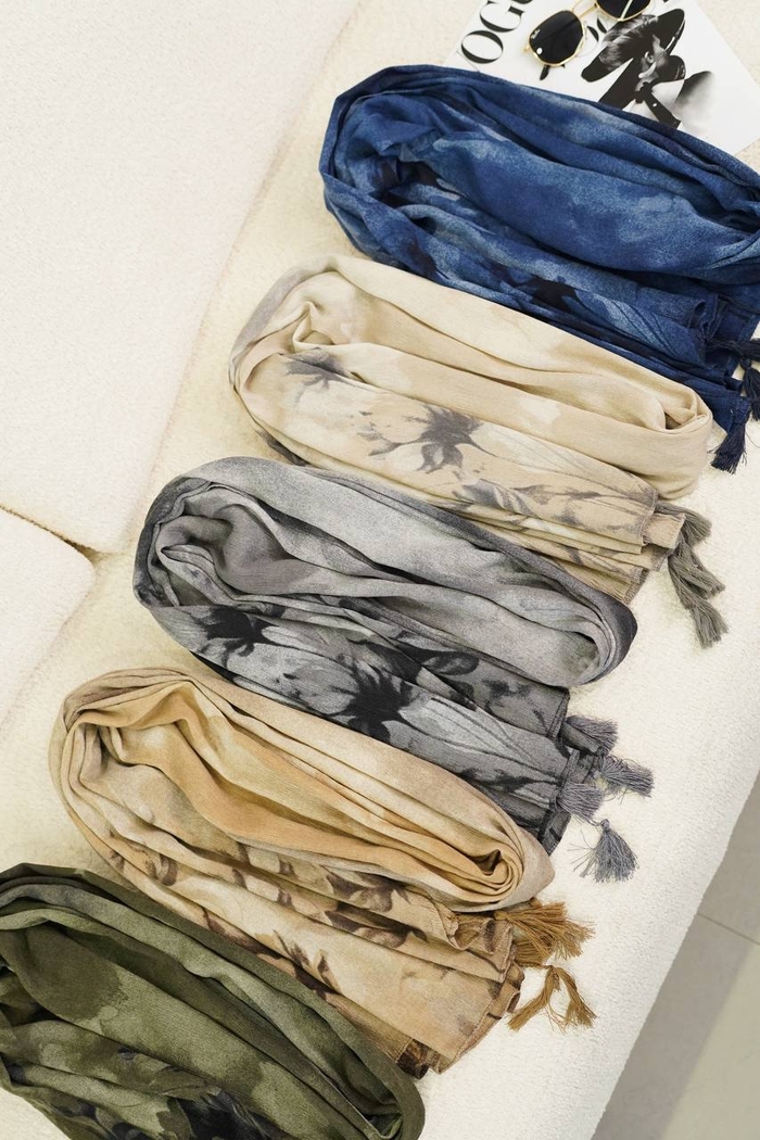 شال نخی طرح آبرنگی منگوله‌دار کد۱۰۶