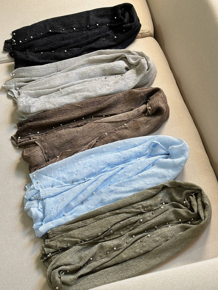شال پلیسه شنی دور مرواریدی وارداتی کد۹۵