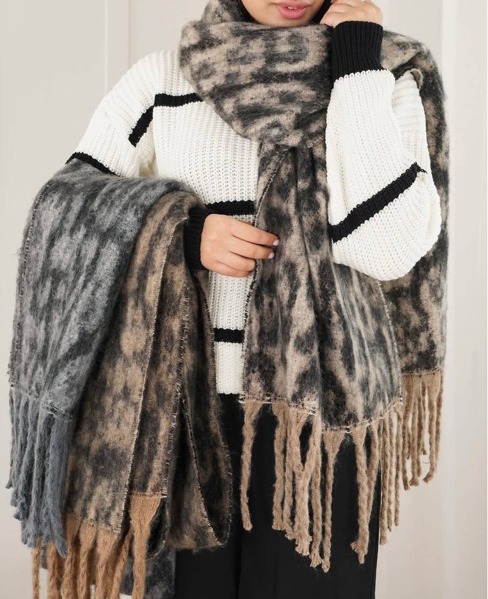 شال برشکا پلنگی وارداتی منگوله‌دار کد۵۸